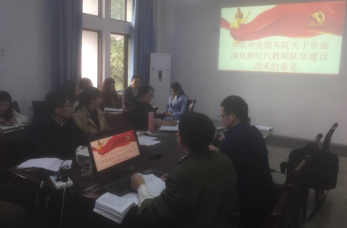 环境系党支部组织系全体教师在能源楼316学习传达“中共中央国务院关于全面深化新时代教师队伍建设改革的意见”。会议由系支部书记江用彬主持。根据校、院党委精神,支部带领全体党员学习“意见”内容,深刻认识“意见”中指出的教师队伍建设的重要意义和总体要求,深入领会“意见”中关于坚持社会主义办学方向,落实立德树人根本任务的指导思想。支部要求支部和系班子要在今后的工作过程中加强师德师风建设,党员教师要带头树立以德育人的榜样,要求全体教师以“四有好教师”为标准,弘扬高尚师德。学习后大家集体讨论,教师们一致认为要在今后的工作过程中不断提高自己,要做一个党和人民满意的高素质、专业化、创新型的教师。