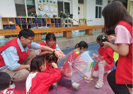 青年志愿者协会于2022年5月23日下午前往安工大幼儿园,与孩子们一起进行画伞活动。