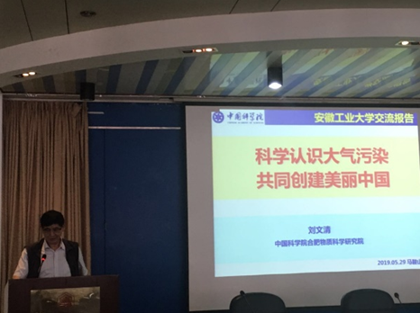 刘文清院士首先做了题为“科学认识大气污染,共同创建美丽中国”的精彩报告,刘院士成功将光谱学技术应用于环境监测,开拓了中国环境光学监测技术新领域,发展了高灵敏环境监测新方法、新技术,达到了国际先进水平;研发了系列先进环境监测设备,促进了中国环境监测技术的进步。他主持开展了环境光学技术方法创新,建立了环境污染物的光谱特征数据库,研发了污染物光谱定量解析算法和工程化应用软件。利用发展的环境光学监测技术方法,研发了20多种常规污染物、污染源,VOCs,颗粒物,环境安全,水质污染在线监测技术设备,为改变中国长期以来环境自动在线监测设备依赖国外进口的局面发挥了带动作用。设备先后在北京、上海、广州、重庆等重点城市开展大气污染外场监测示范应用,为全面掌握我国大气污染的形成、演变和输送过程提供技术支撑。在提问环节中,刘文清院士就师生提出的问题,结合我国实际进行了认真细致地回答。