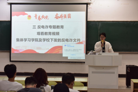关于防范电信诈骗的相关文件,集体观看了防电诈宣传视频,通过真实案例深刻揭露了电信网络诈骗的常见套路及目标群体,特别是网络刷单、网贷、冒充客服退款、冒充公检法人员等电信诈骗形式,讲解了诈骗犯罪分子惯用作案手段、诈骗花式、常见手法及“识骗防骗”技巧,切实提高广大学生的防范意识和能力。