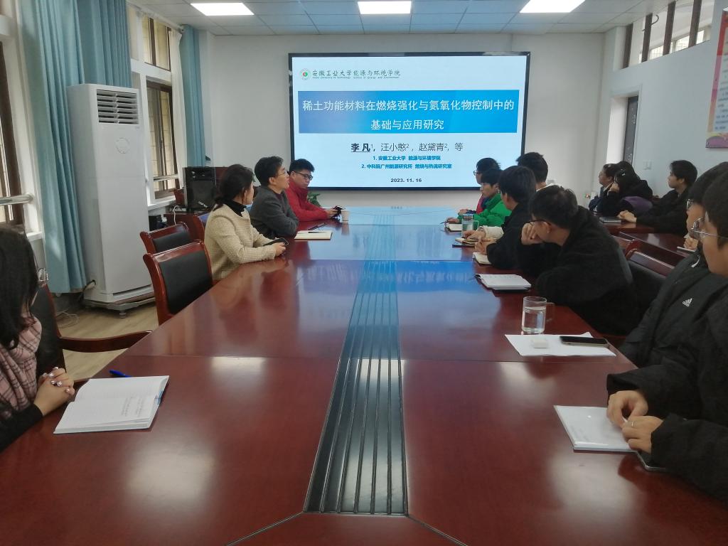 李凡博士以《稀土功能材料在燃烧强化与氮氧化物控制中的基础与应用研究》为题进行学术报告,科研副院长楚化强教授主持了报告会。