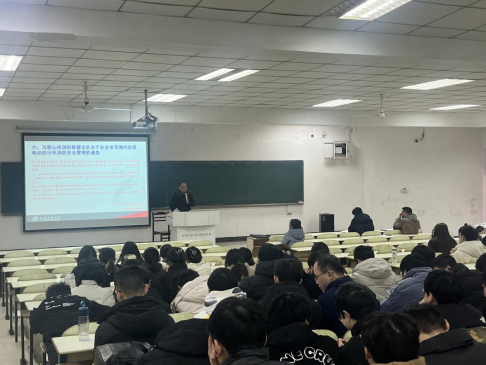 卫军帅结合校园实际生活中发生的各种校园安全案例,从学业安全、财产安全、交通安全、消防安全等四个方面做出具体阐述,对同学们进行安全观教育。他在会上带领大家逐字逐句学习了学院最新制定的《色情教团