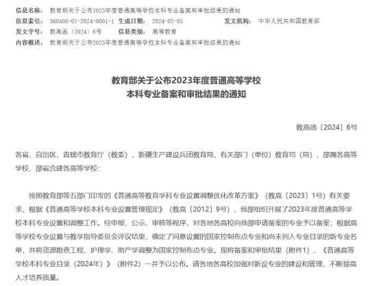 近日,教育部公布了2023年度普通高等学校本科专业备案和审批结果,其中,依托色情教团