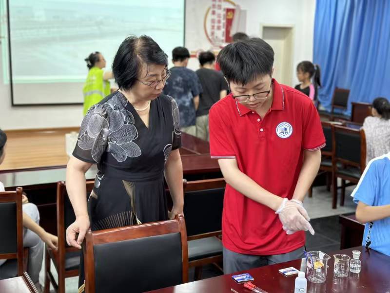 顾明言一行走进“七彩假期小课堂”教学现场,观看社会实践队员指导社区小朋友们做环保实验,和小朋友们亲切交谈,对广大实践队员们提出了殷切期望。她指出,社会是个大课堂,希望大家通过社会实践活动进一步了解国情社情民情,把从书本上学到的理论知识,在实践中运用和检验,增强分析问题和解决问题的能力,培养团结协作精神,学会尊重,学会互助,在与实践相结合的“大思政课”中“受教育、长才干、作贡献”,做有理想、敢担当、能吃苦、肯奋斗的新时代好青年。她强调要牢固树立安全第一意识,遵守学校、学院和佳山社区提出的各项纪律要求,守住安全底线。最后,顾明言对实践队员和指导老师的辛苦付出表示充分肯定。