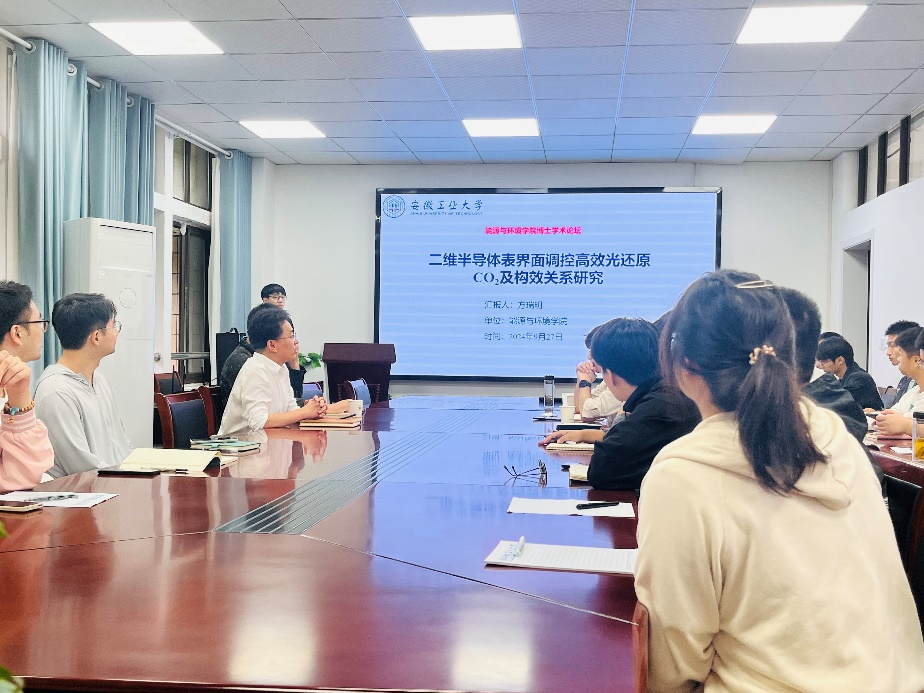 新进教师方瑞明博士进行了以《二维半导体表界面调控高效光还原CO2及构效关系研究》为题的学术报告,科研副院长楚化强主持报告会,学院师生积极参与,气氛热烈。