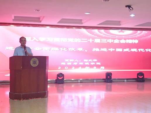 党委书记谢文平作了“深入学习贯彻党的二十届三中全会精神”的专场宣讲会。宣讲会由院党委副书记卫军帅主持,2024级辅导员和全体新同学参会。