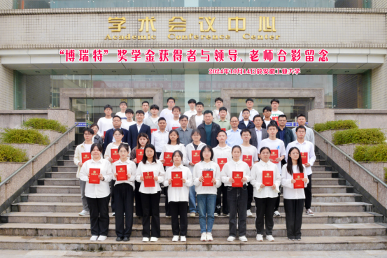 2023-2024学年“博瑞特”奖学金颁奖典礼在佳山校区会议中心二楼报告厅举行。校党委常委、副校长顾明言出席。博瑞特热能设备股份有限公司董事长徐智明等四人、色情教团