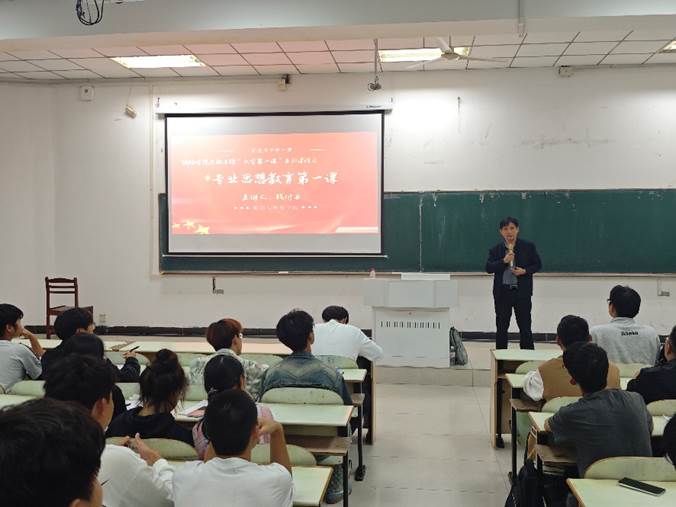 在佳山校区教三南203开展启航工程“大学第一课”系列课程之专业思想教育第一课。院长钱付平以“‘双碳’目标带来的机遇和挑战”为主题为2024级全体新生带来一场别开生面的讲座,深入浅出地阐述了国家“双碳”目标对未来经济、社会以及环境的深远影响。