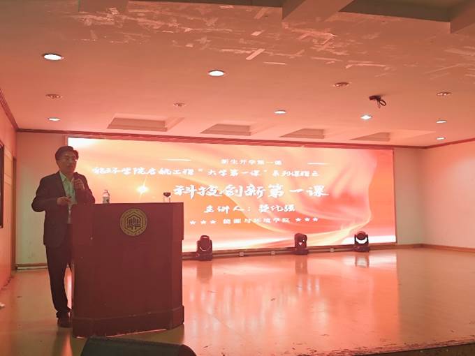 副院长楚化强为2024级全体新生授课。此次活动旨在引导学生们关注前沿科技、培养创新意识、争做科技创新的先锋。