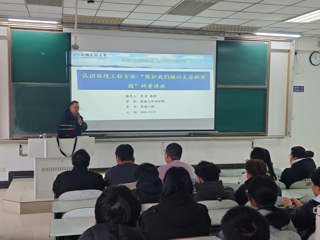 于12月23日在教三南302举办了专场专业思想教育主题讲座。此次讲座由贾勇教授主讲,2024级辅导员范浩东主持,环境工程专业全体学生参与。