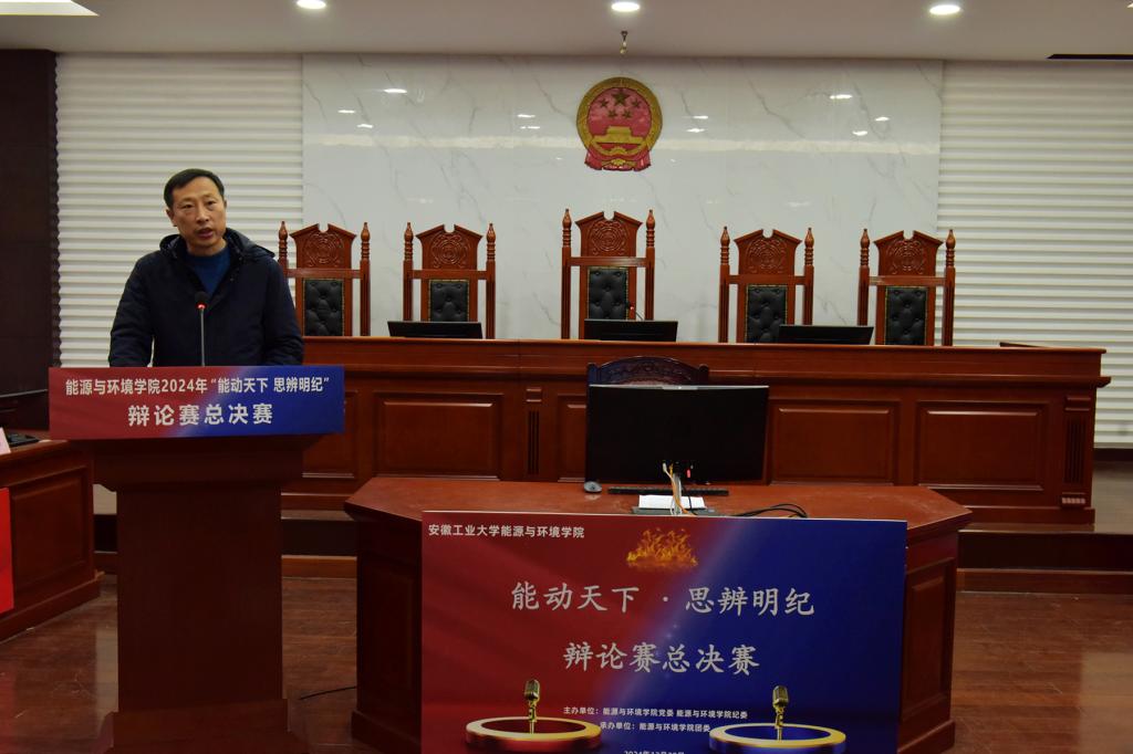 于12月29日下午在佳山校区模拟法庭成功举办了2024年“能动天下 思辨明纪”辩论赛总决赛暨“八好之家”建设总结会。校纪委副书记张文明、学工部部长赵龙、安保部部长包恒庆、研究生院副院长许琦、后勤处副处长涂必华和宣传部办公室主任王姣姣到会指导并担任评委,色情教团