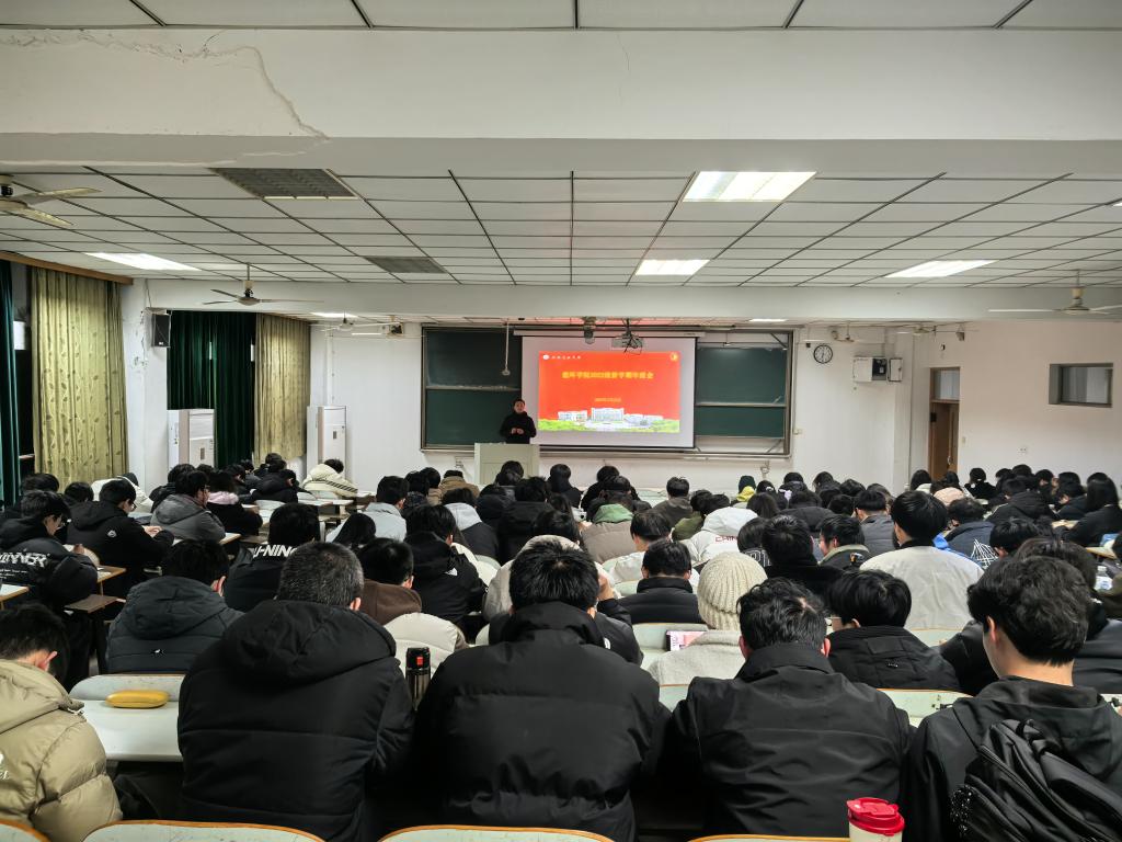 会上,沈厚发对上一学期同学们的学习、生活和思想状况进行了总结,肯定了大家在学业和个人成长方面取得的进步,同时也指出了需要改进的地方。随后,他围绕新学期的安全教育主题,重点强调了校园安全、宿舍安全、心理健康、网络安全等方面的内容,他还结合实际案例,提醒同学们在日常生活中增强安全意识,遵守学校的各项规章制度,确保人身和财产安全。此外,会议还对新学期的学风建设、课程学习以及创新创业活动进行了介绍,鼓励同学们以更加积极的态度投入到新学期的学习中,提升专业能力,合理做好考研、就业规划,同时积极参与各类实践活动,锻炼综合素质。
