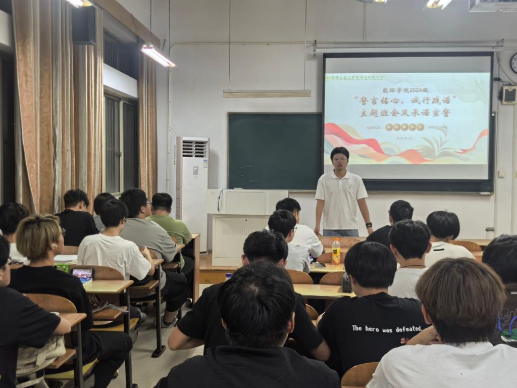 2024级于5月19日晚开展“誓言铭心,诚行践诺”主题班会及承诺宣誓活动。班会由辅导员范浩东主持,2024级全体学生参与。