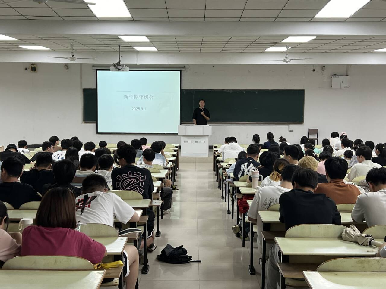 于9月1日在教三南103召开考研、就业动员年级会。会议由院团委书记、2022级辅导员沈厚发主持,全体2022级学生参加会议。