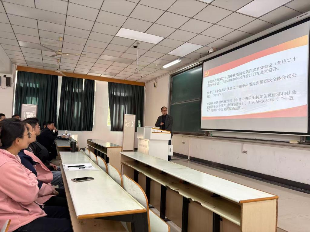 会上,谢文平传达了党的二十届四中全会精神,引导全体教职工将思想与行动统一到四中全会精神上来,切实把学习成果转化为推动工作的强大动力。谢文平还就相关工作进行重点部署:一是规范兼职管理,严守工作底线。谢文平传达了学校兼职管理相关通知,要求大家严格遵守学校兼职管理规定,确保兼职工作不影响自身教学科研任务的高质量完成。二是筑牢安全防线,凝聚发展合力。以安全文化月和消防宣传月为契机,聚焦学生宿舍安全、实验室安全等关键风险点,全方位守护校园安全稳定;严守意识形态安全阵地,规范课堂教学与新闻宣传报道。三是号召全体教职工结合工作实际,积极为学院 “十五五” 规划建言献策,凝聚起共谋发展的强大合力。