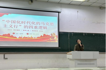 凌静雯老师以“论‘中国化时代化的马克思主义行’的四重逻辑”为主题,立足马克思主义经典作家观点,结合历史与现实,分别从理论逻辑、历史逻辑、价值逻辑、实践逻辑四个方面展开,阐释了贯穿革命年代、建设年代、改革年代和新时代中国化时代化马克思主义真理的科学性、具体性、实践性。回望百年党史,中国共产党人总是能创造新理论、把握新情况、解决新问题、取得新成就,这均是源于科学的理论和思想指引。“中国化时代化的马克思主义行”回答了“中国共产党为什么能,中国特色社会主义为什么行”的重大命题。