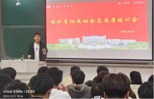 青年志愿者协会在教三南302召开 秋季运动会志愿者培训会活动。全体青协成员和志愿者们参加会议,会议由24级新生辅导员范浩东主持。